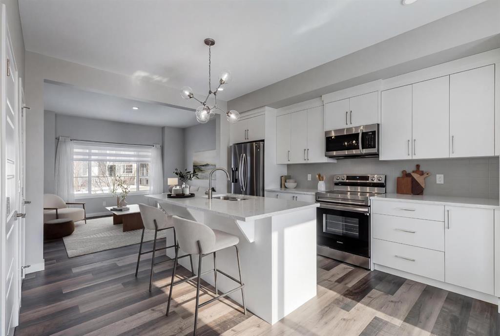 Welcome to this beautifully maintained no condo fee townhome, perfectly positioned in the heart of a vibrant, family-friendly community. This impressive property blends modern style with thoughtful functionality, creating a home that is as practical as it is elegant. From the moment you step inside, you’ll appreciate the quality finishes, upgraded window coverings, and natural light that fill the main floor. The chef-inspired kitchen features upgraded cabinetry, sleek stainless steel appliances, and stunni...