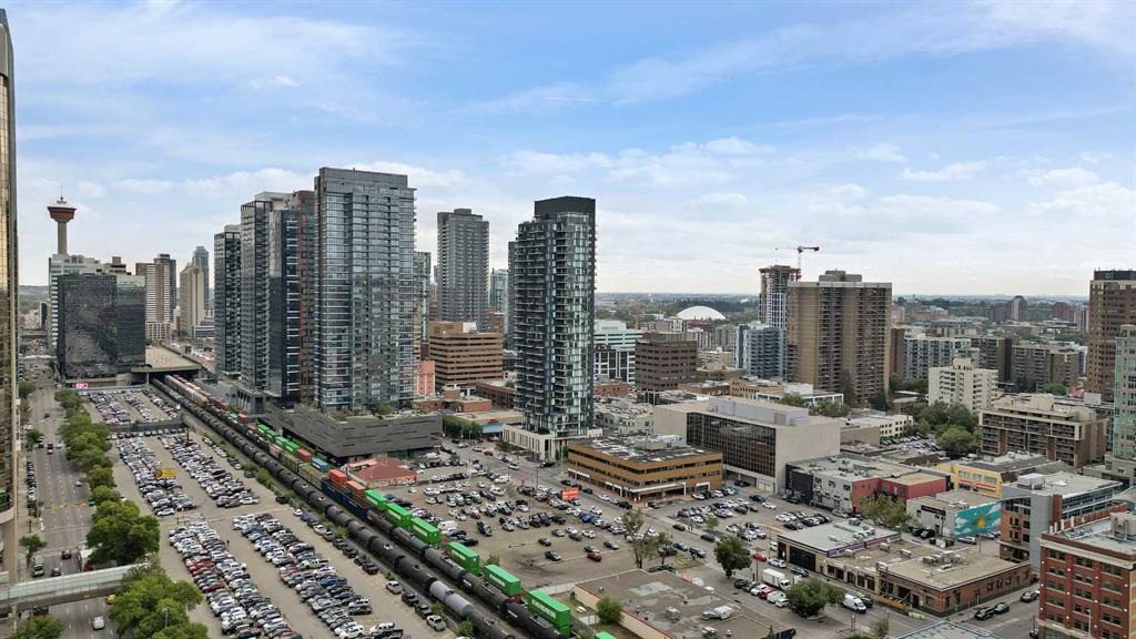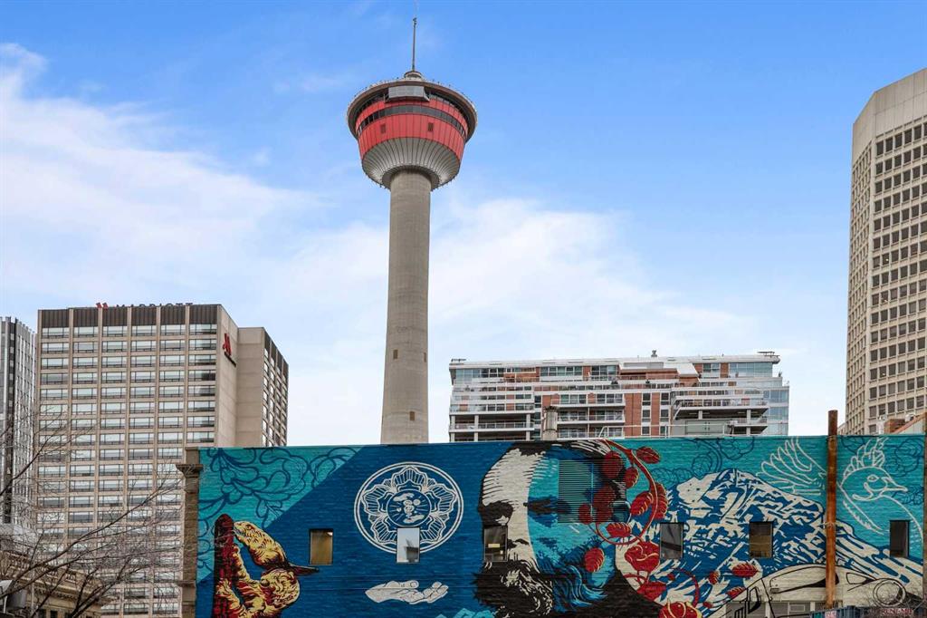 Experience elevated downtown living in this stylish one-bedroom residence in the highly sought-after 6th and Tenth building. Perched on the 14th floor, this thoughtfully designed home offers stunning city views, including a direct sightline to the iconic Calgary Tower. Designed with modern urban living in mind, the unit features striking 9-foot exposed concrete ceilings and expansive floor-to-ceiling windows that flood the space with natural light. Step out onto your private balcony—complete with a gas BBQ ...