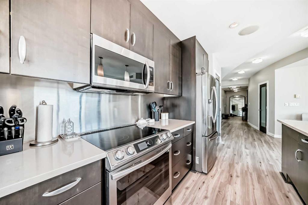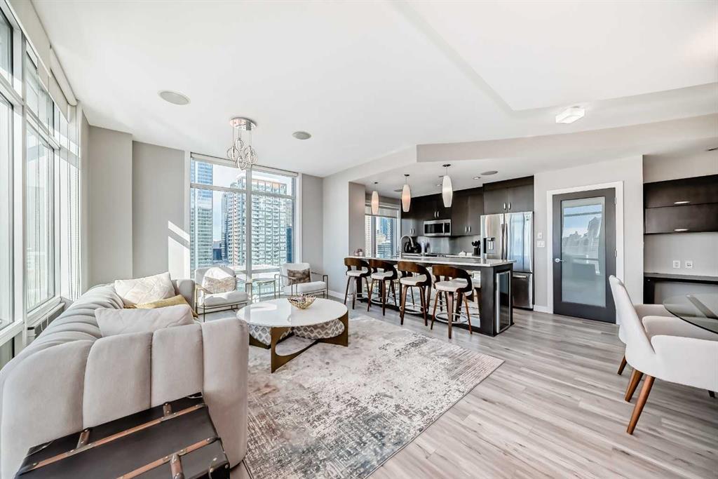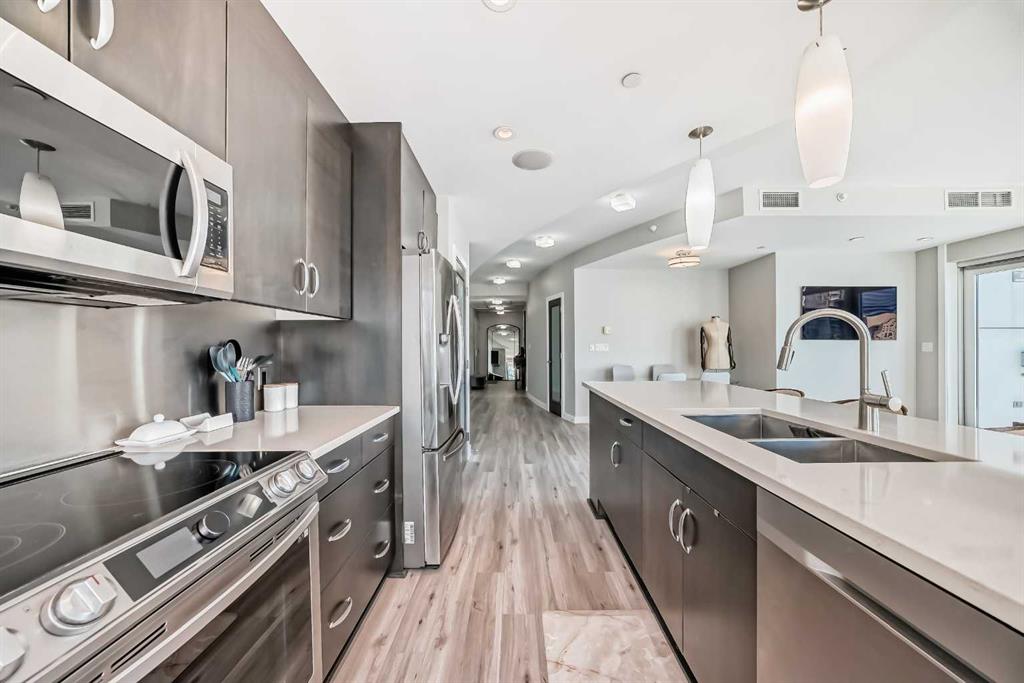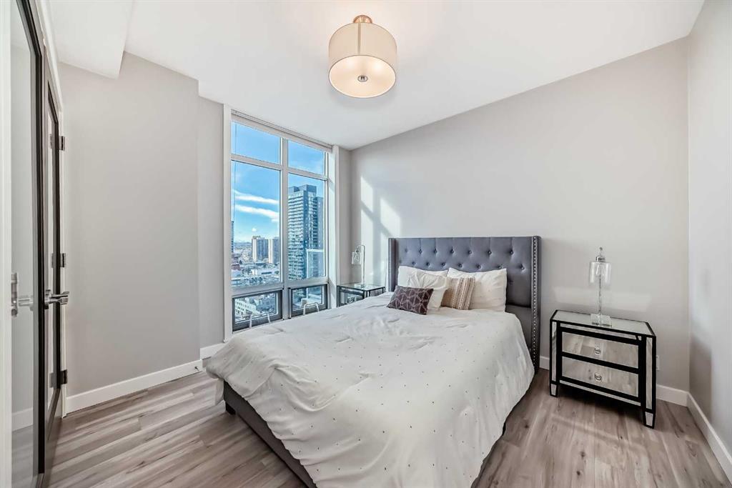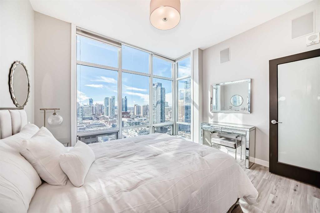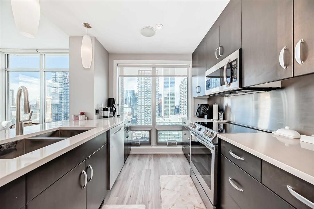 Sub Penthouse!! Experience elevated urban living in this stunning executive condo, featuring unobstructed panoramic city and mountain views. Flooded with natural light by day and illuminated by the glow of city lights at night, this spacious and immaculate suite offers an open floor plan with 9-ft ceilings, floor-to-ceiling windows, modern floors, and solid concrete construction. The generous kitchen is designed for both everyday living and entertaining, complete with extensive cabinetry, stainless steel a...