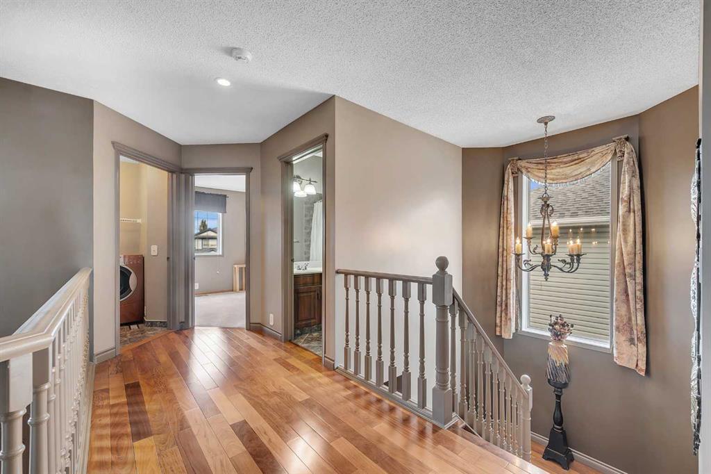 First time ever on MLS! This beautifully maintained and exceptionally clean home in the heart of Panorama Hills shows true pride of ownership. Featuring 4 spacious bedrooms upstairs and convenient upper floor laundry, this layout is ideal for families. You’ll immediately notice the soaring 16’ ceilings in the front living room and foyer, creating an open and airy first impression. The main floor offers Brazilian walnut hardwood flooring, a main floor den perfect for a home office or guest room, and an upgr...
