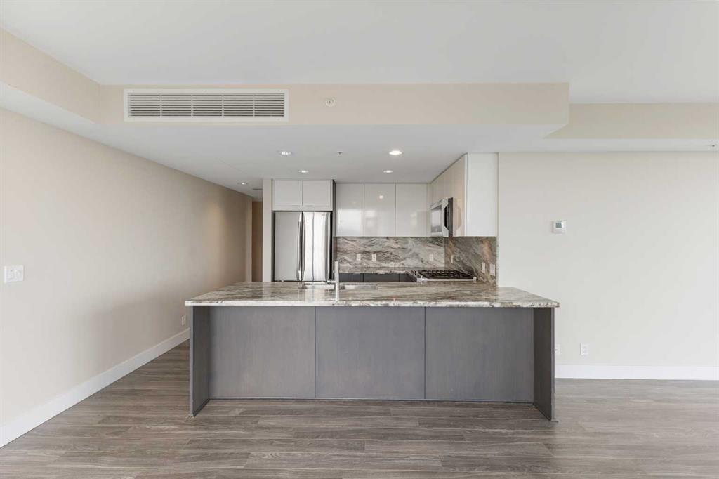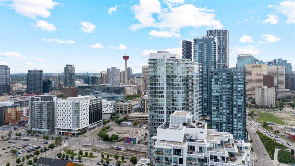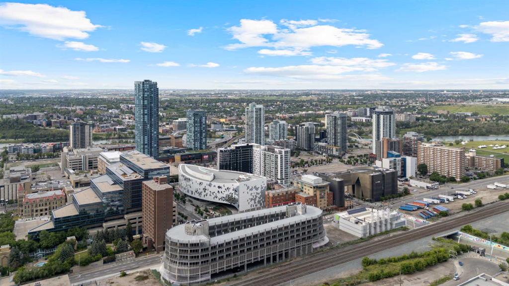 Welcome to your dream urban oasis in the heart of East Village. This stunning 19th-floor, 2-bedroom, 2-bathroom residence showcases breathtaking views of the Bow River and downtown skyline through expansive floor-to-ceiling windows that flood the home with natural light. Sleek laminate flooring throughout enhances the modern, open feel of the space. The contemporary kitchen is designed to impress, featuring granite countertops, a gas range stove, and ample storage—perfect for both everyday living and enter...