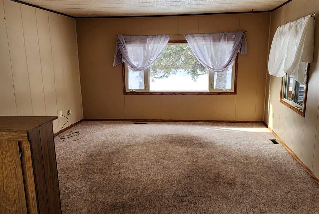 Great opportunity to own this 3 bedroom mobile on its own lot in Sundre. Location is close to schools, shopping and all that Sundre has to offer. Property has concrete driveway & covered deck in front sheltered by mature spruce trees in yard. This home has large addition room with independent natural gas heater and separate access to back yard. Bathroom contains washer/dryer and has jetted soaker tub. Comes complete with detached 2 car heated garage in the back, nice concrete apron and easy access to back l...