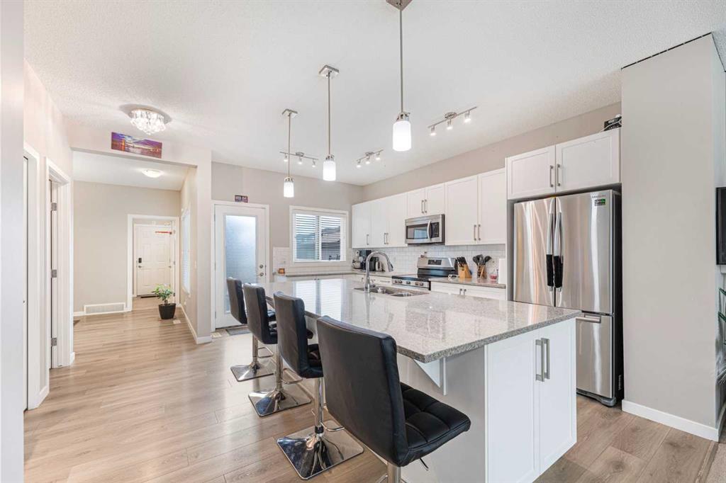 Welcome to this Jayman-Built home with 4 BEDROOMS UP and an ATTACHED REAR DOUBLE GARAGE and a South backyard. At just over 2137 sq ft, this is a great home that can grow with your family. Some bonuses include upgraded kitchen and appliances with island and eating bar, main floor den, walk-in pantry and high ceilings. Upstairs you will find 4 bedrooms, with a massive primary bedroom and walk-in closet. The primary ensuite is a luxurious 5 piece with his/her vanities plus a shower and tub. You will also find ...