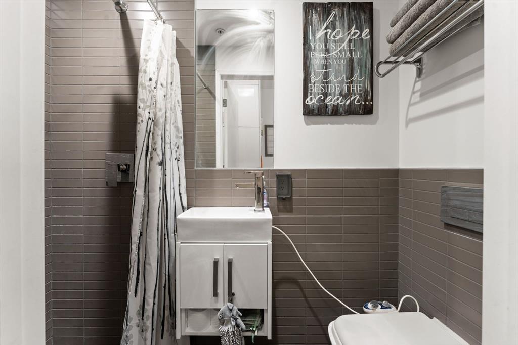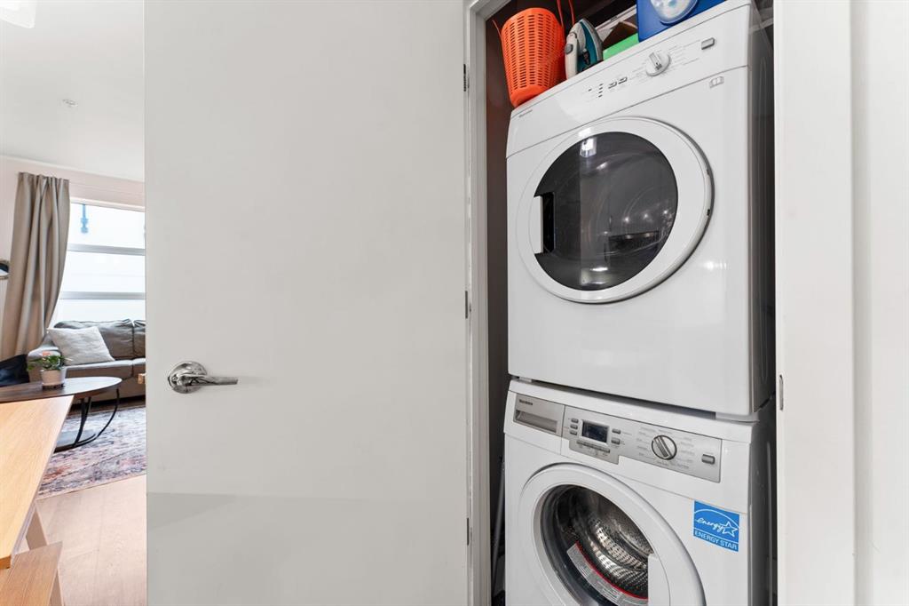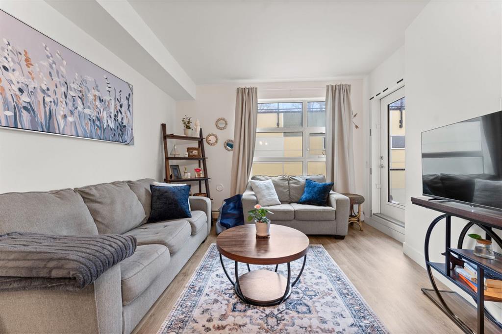 Welcome to Victory & Venture Bridgeland, offering exceptional urban living in one of Calgary’s most vibrant neighborhoods. This meticulously designed 2-bedroom, 2-bathroom condo features upscale finishes and modern conveniences. The gourmet kitchen boasts high-gloss, high-profile cabinets, quartz countertops with a stylish tile backsplash, and European integrated appliances, including a gas cooktop and built-in oven. Wide plank laminate flooring, 9’ ceilings, and modern lighting create a contemporary and s...