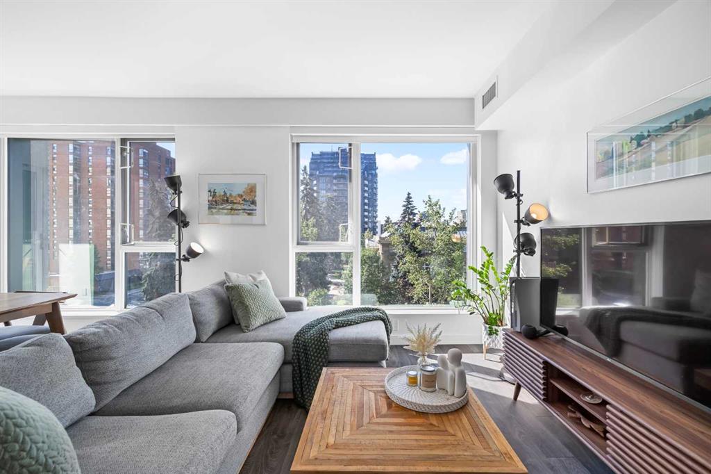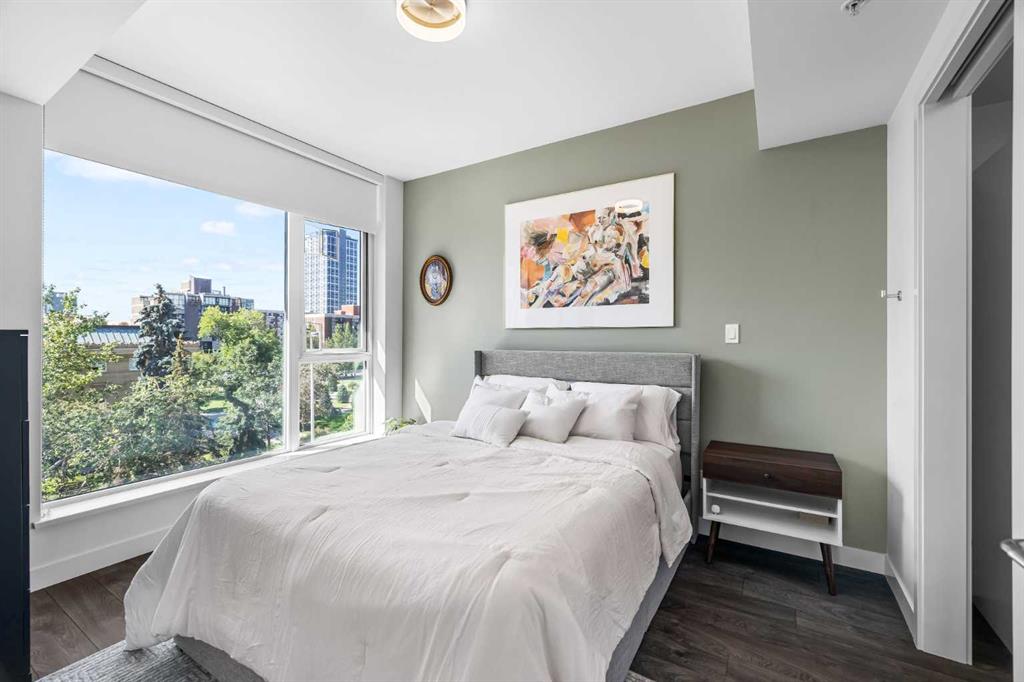 Welcome to Park Point, where elevated downtown living meets one of the Beltline’s most coveted locations. This stunning corner residence showcases sweeping southeast views over Central Memorial Park and the Calgary Tower, offering an ever changing backdrop of greenery, fountains, and city energy from the living room, primary bedroom, and private balcony. Inside, the home is bathed in natural light from expansive windows and finished with wide-plank laminate flooring throughout, creating a clean, modern aes...