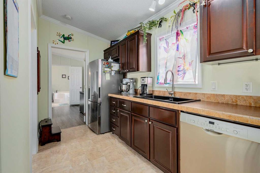 Welcome to this bright and inviting mobile home in the friendly town of Didsbury, Alberta. Thoughtfully maintained and move-in ready, this home offers 3 comfortable bedrooms, including a spacious primary suite with a relaxing 5-piece ensuite. The kitchen is both functional and stylish, featuring upgraded appliances such as a newer gas range, dishwasher, refrigerator, and convenient washer and dryer set. Whether you’re cooking a family meal or entertaining friends, this space is designed to make life easy. S...