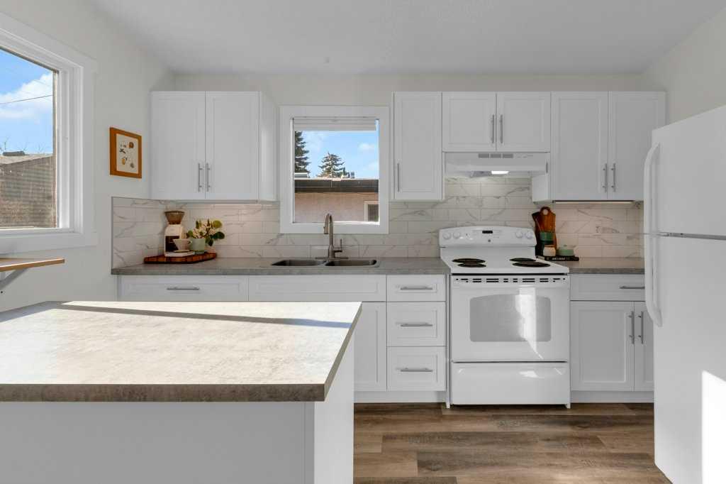 This is a rare FULL DUPLEX (both sides) FOR SALE on a quiet street in sought-after Bowness. Located on a 50' X 121.5' lot. #7303 has been completely renovated 5 years ago, while #7301 was upgraded approximately 15 years ago and shows very well. Both sides feature an identical layout (reversed) with a spacious living room, dining room, kitchen, 2 piece bath, and laundry on the main level, plus 3 bedrooms with large windows and a full bath on the lower level. Vaulted ceilings enhance the bright, open main flo...