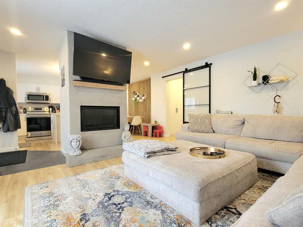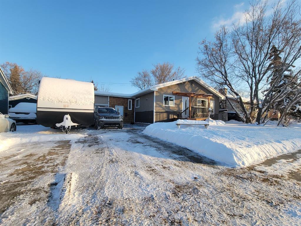 NEW TO THE MARKET! Check out this beautifully renovated, mid century, scandinavian designed bungalow, nestled on a large lot in Highland Park! This is right on 100 street, but you’ll find the service road barrier creates good distance between the house & 100th street, plus the new windows keep the sound down & the view of the school & mature trees are well worth it! This homes 2019 renovations included a new roof, siding, windows, doors, garage door, kitchen, all brand new appliances, LED lights throughout...