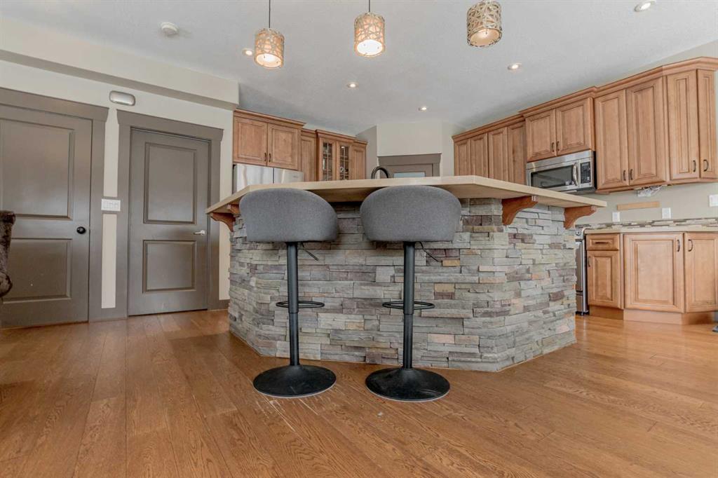 This magnificent custom-built chalet-style home in Grande Prairie offers over 2,500 sq ft of thoughtfully designed living space with 5 bedrooms, an office/den, and 4.5 bathrooms — perfectly suited for modern family living. The open-concept main floor features a stunning kitchen with warm wood cabinetry, soft-close drawers, quartz countertops, stainless steel appliances, gas stove hookup, coffee bar, built-in wine rack, and a spacious walk-in pantry. A bright front office overlooks the front yard, creating a...