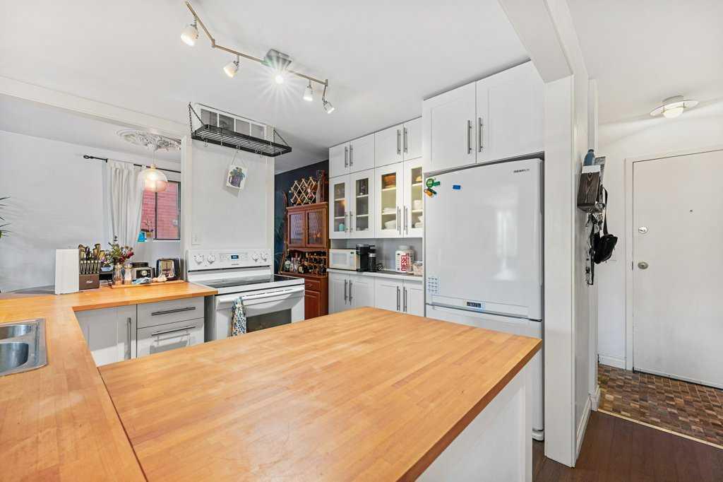 Step into this spectacular and spacious 1,093 sqft, 2-bedroom, 2-bathroom modern condo and discover a haven of contemporary luxury. Updated and beautifully designed, and best of all it has low condo fees for the unit size! Uniquely surrounded by concrete slab construction, and no adjoining units, this condo ensures superior quietness and tranquility. The superb layout of this condo ensures maximum space and functionality. The U-shaped chef's kitchen, featuring stunning butcher block countertops, is absolut...